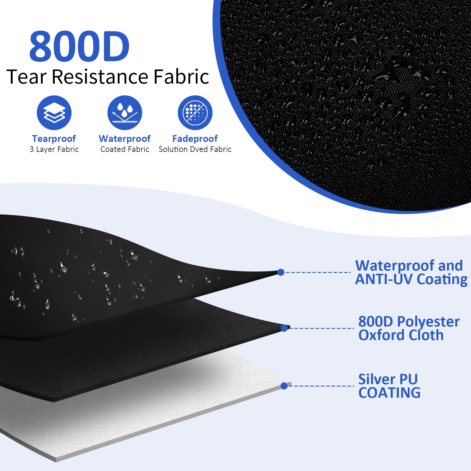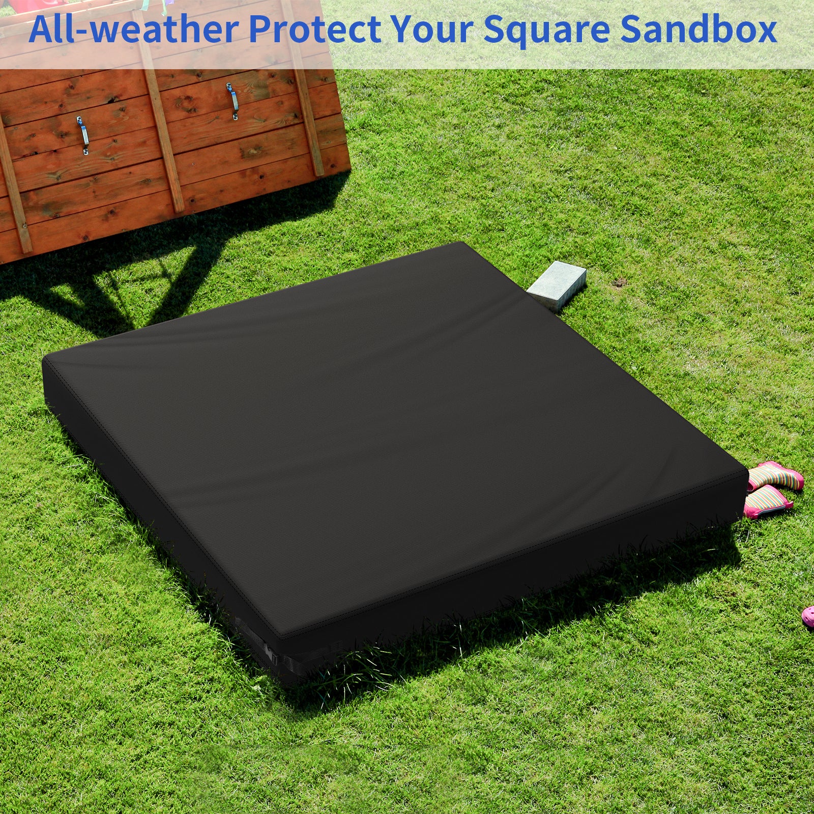 All Weather Protection: Square sandbox cover is made of 800D Oxford fabric, durable and tear-resistant, waterproof and UV-resistant, protects the sandbox and sand from rain, snow, UV rays, wind, and dust to keep it dry and provide all-weather protection.