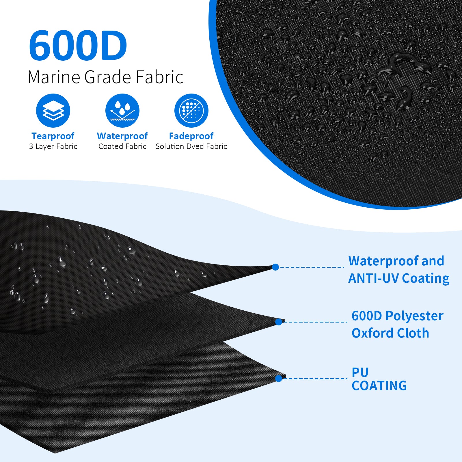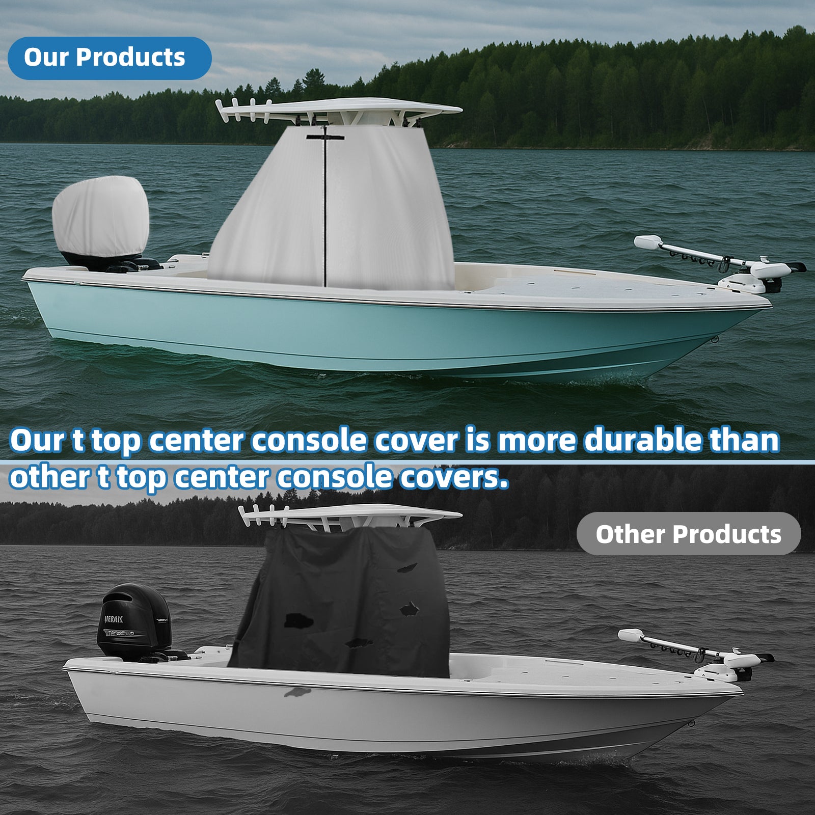 - Upgraded Durability: The T-top center console boat cover features double stitching and waterproof seam sealing tape to ensure extra strength and durability. High-density rolled hem stitching ensures the cover will not tear, shrink, or stretch, and prevents water seepage at the seams, while the heavy-duty zippers are more durable and windproof