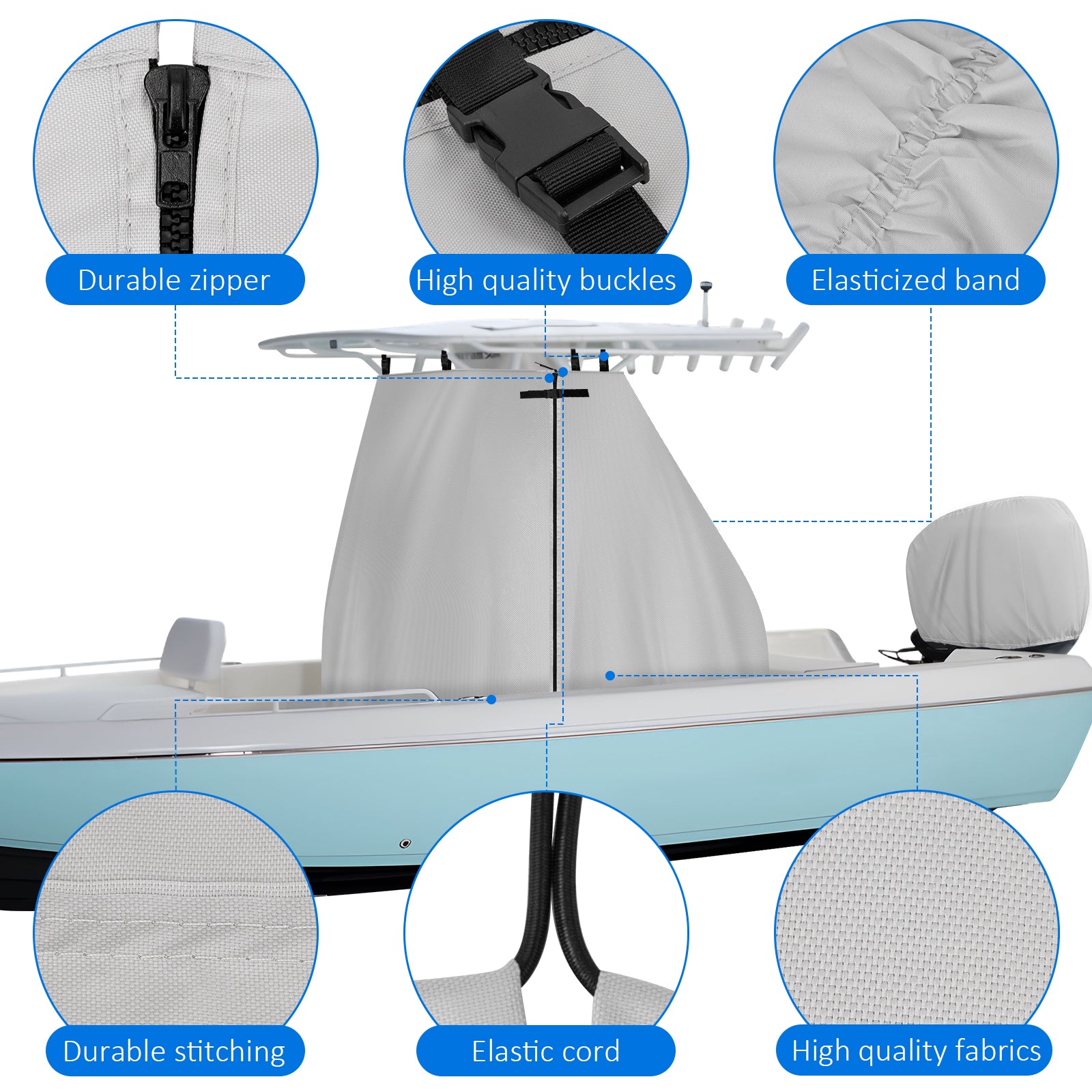 Yexcend T-Top Center Console Boat Cover, Heavy Duty 600D Waterproof T Top Console Cover with Motor Cover, UV Resistant Polyester T-Top Boat Cover, Gray